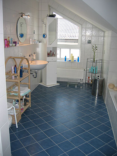 Über das aus Vollholz gefertigte Treppenhaus gelangen Sie nach oben in die Schlafbereiche der Wohnung. Dort erwarten Sie 2 wunderschöne Schlafzimmer (ca. 17 qm und ca.16 qm) mit großen Gauben und ein großes Bad (ca. 7 qm). In den Schlafzimmern ist hochwertiger Teppichboden verlegt. Das ausgesprochen helle Bad wurde in weiß und blau gefliest und mit Dusche und Badewanne ausgestattet. Hier gibt es genug Platz sowie einen Anschluss für Waschmaschine und Trockner. Alternativ kann man zum Wäschewaschen aber auch den gemeinschaftlichen Keller benutzen.